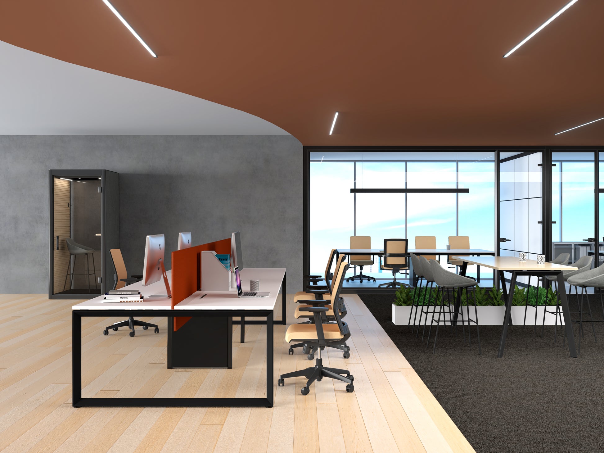 Whether you're focusing on individual tasks that demand precision or engaging in collaborative efforts, the Sovica-O Workstation offers a harmonious blend of style and functionality.